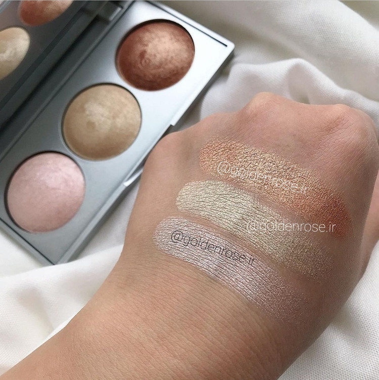 - هایلایتر پودری 3 عددی گلدن رز دارای بافت پودری فشرده و پوشاننده یکدست صورت